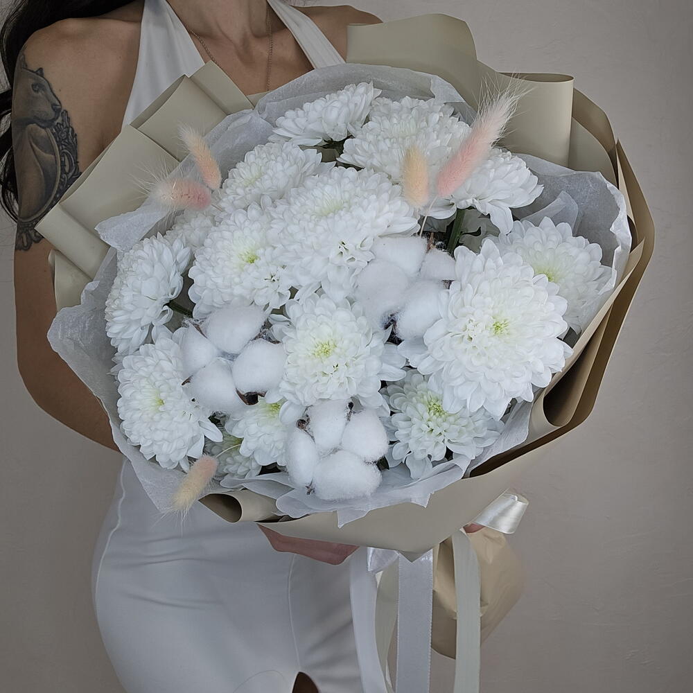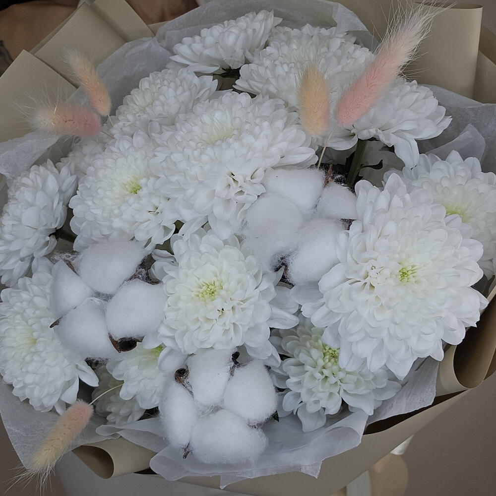 Авторский букет из хлопка, хризантемы и лагуруса 💖 в Белинском